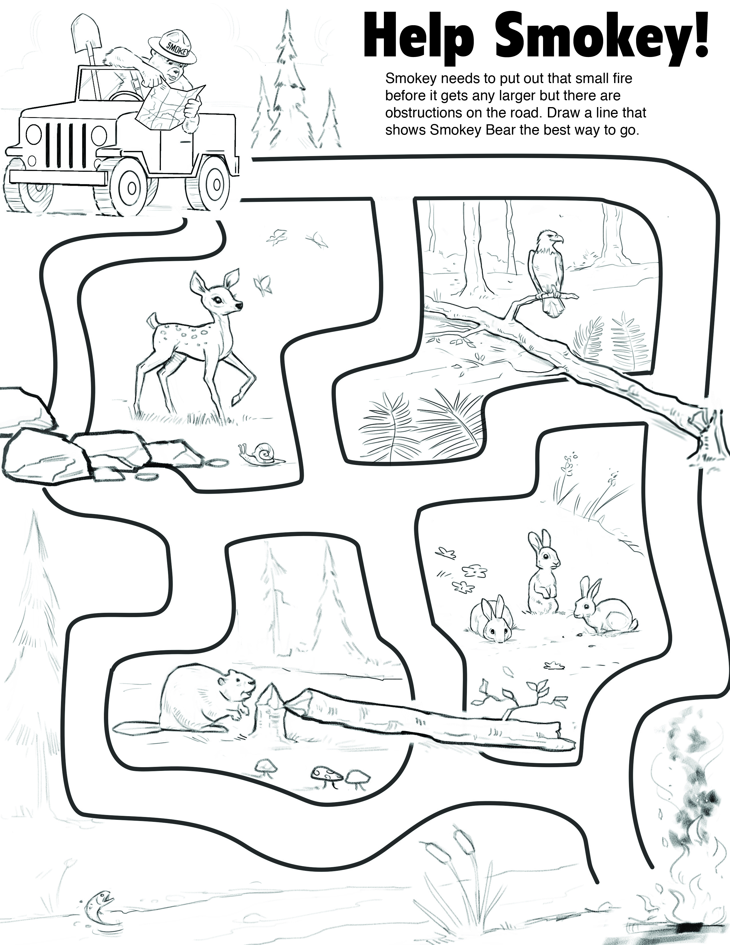 Help Smokey Maze Coloring Page